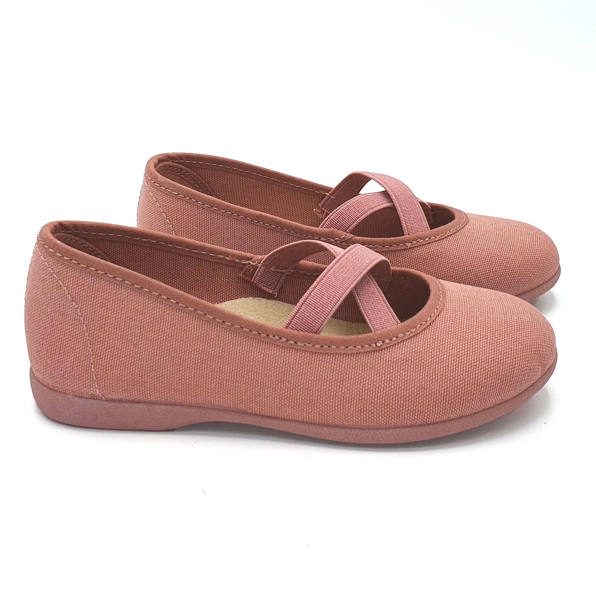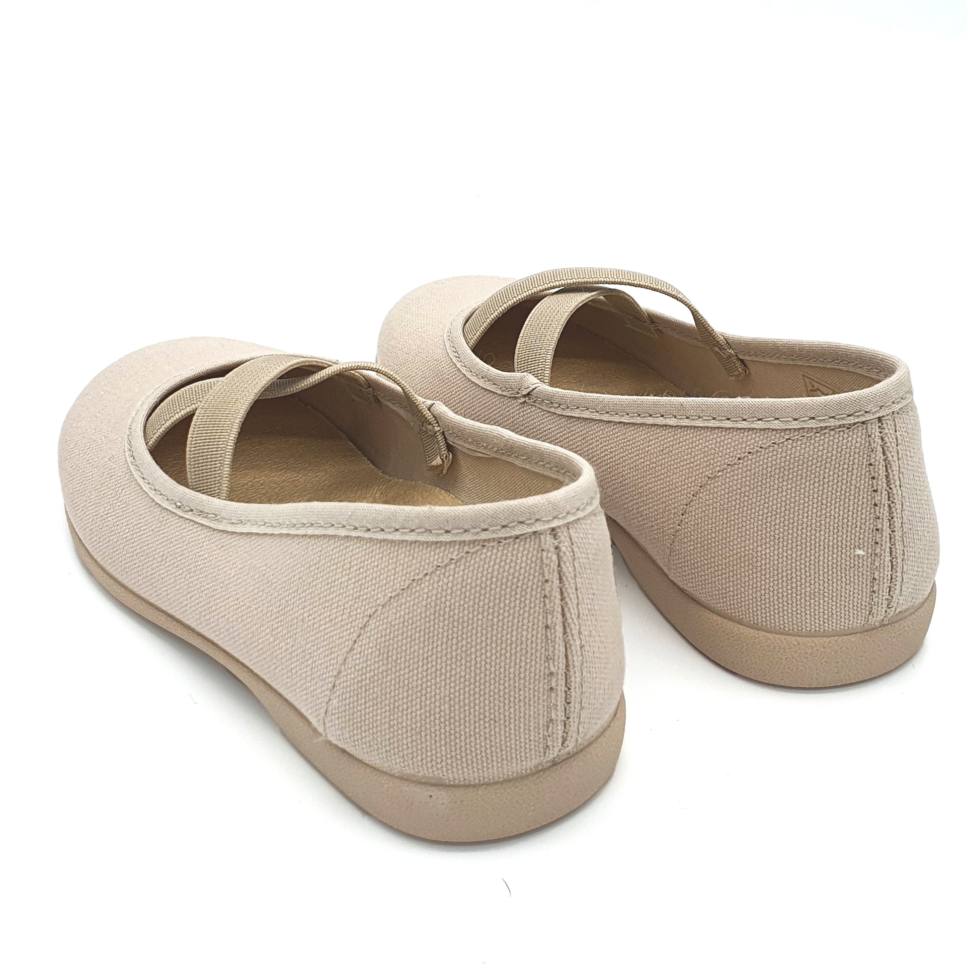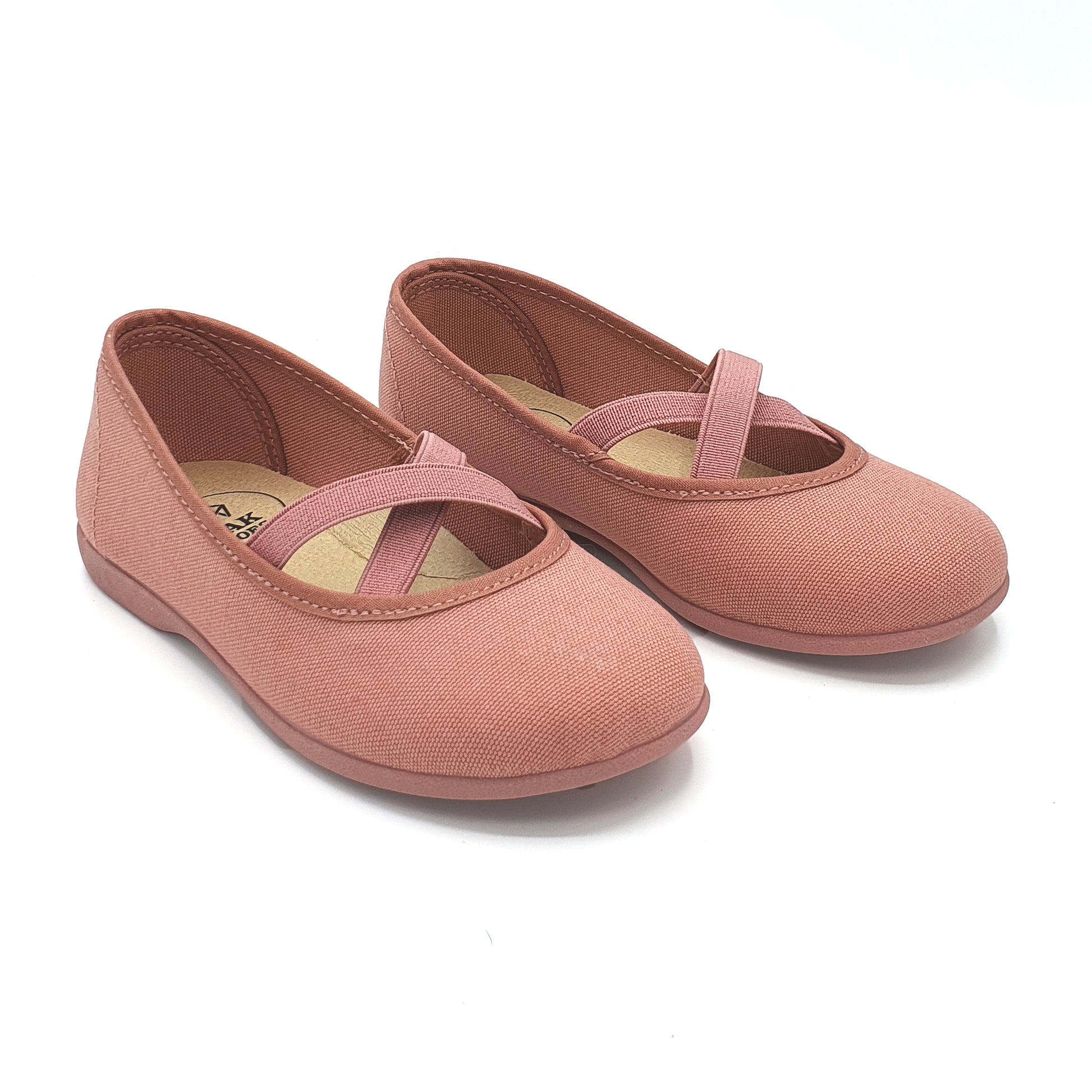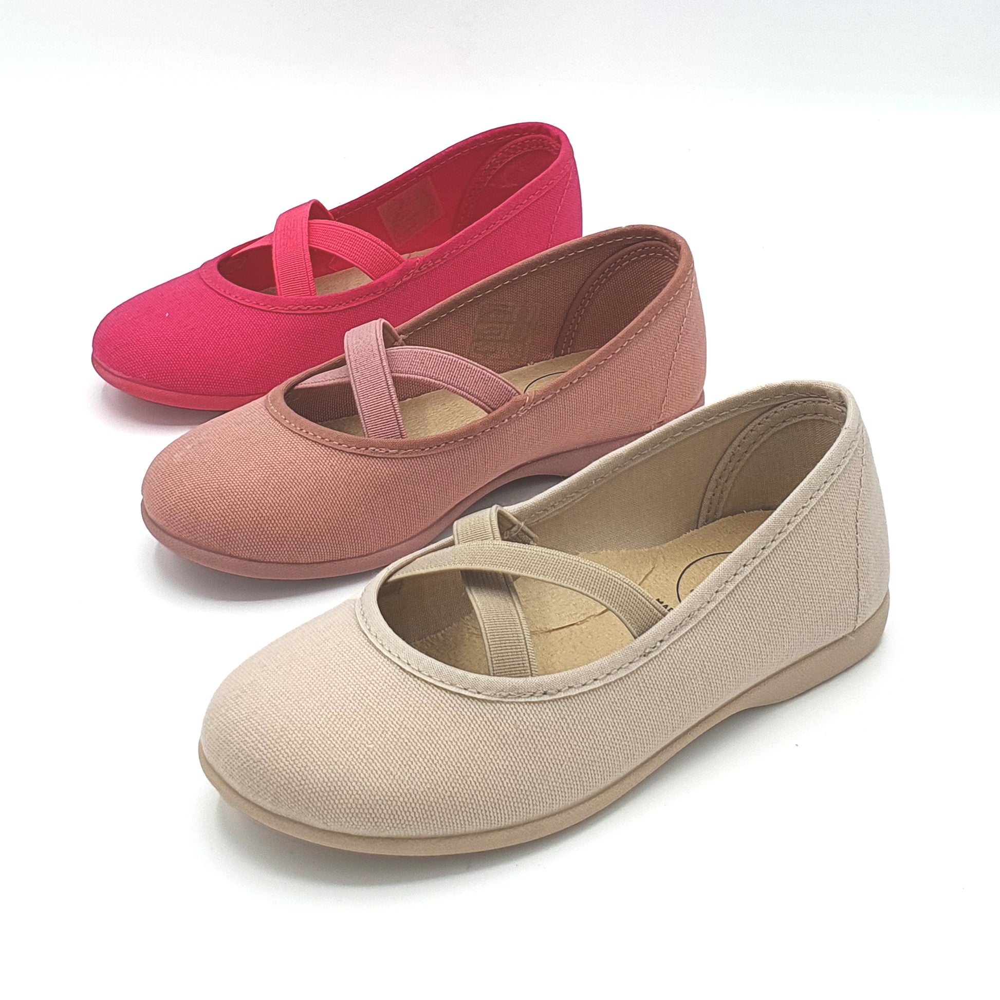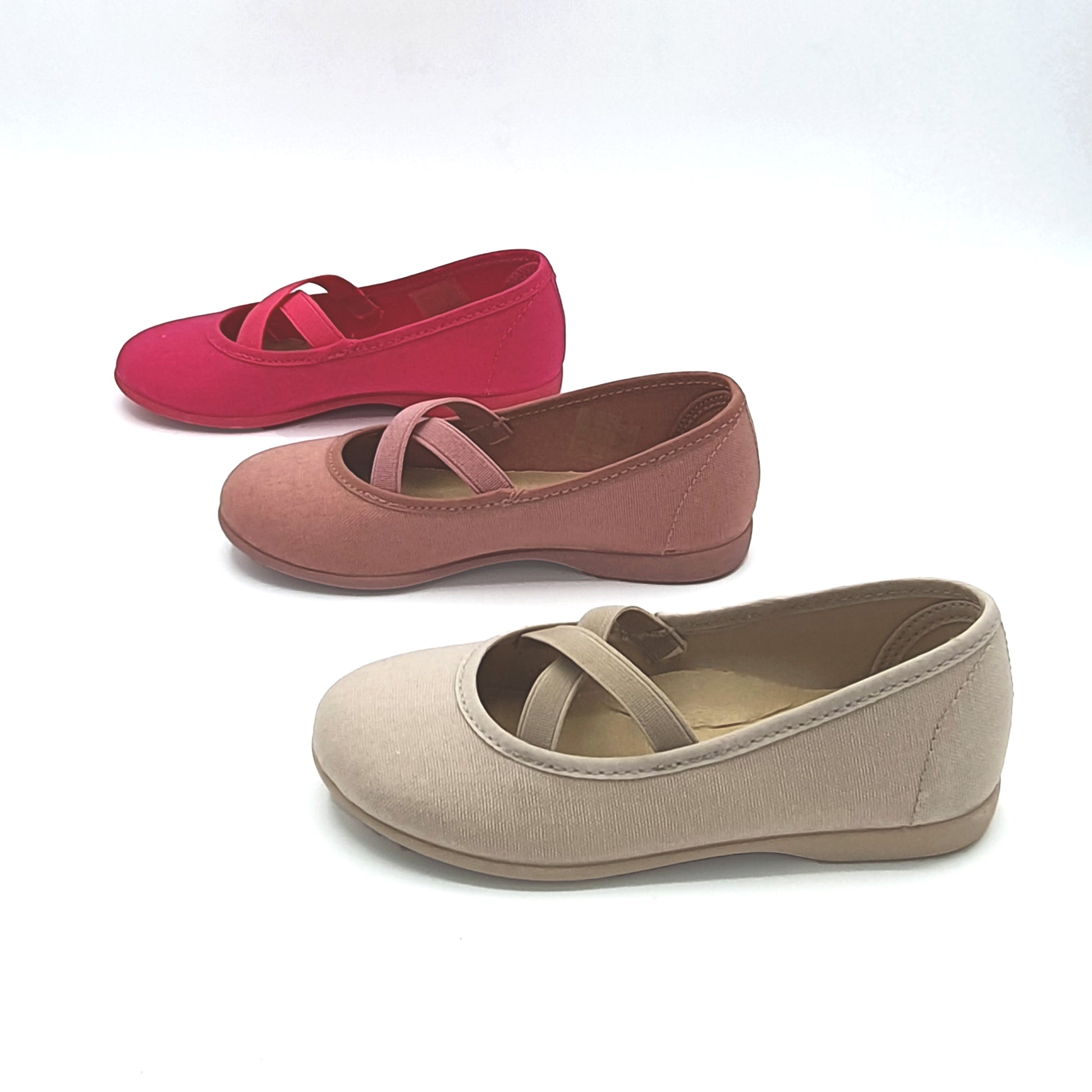 Zapato tipo Bailarina para niña, con cierre elásticos cruzado para una mayor sujeción y comodidad, este diseño combinara perfectamente en toda ocasión.